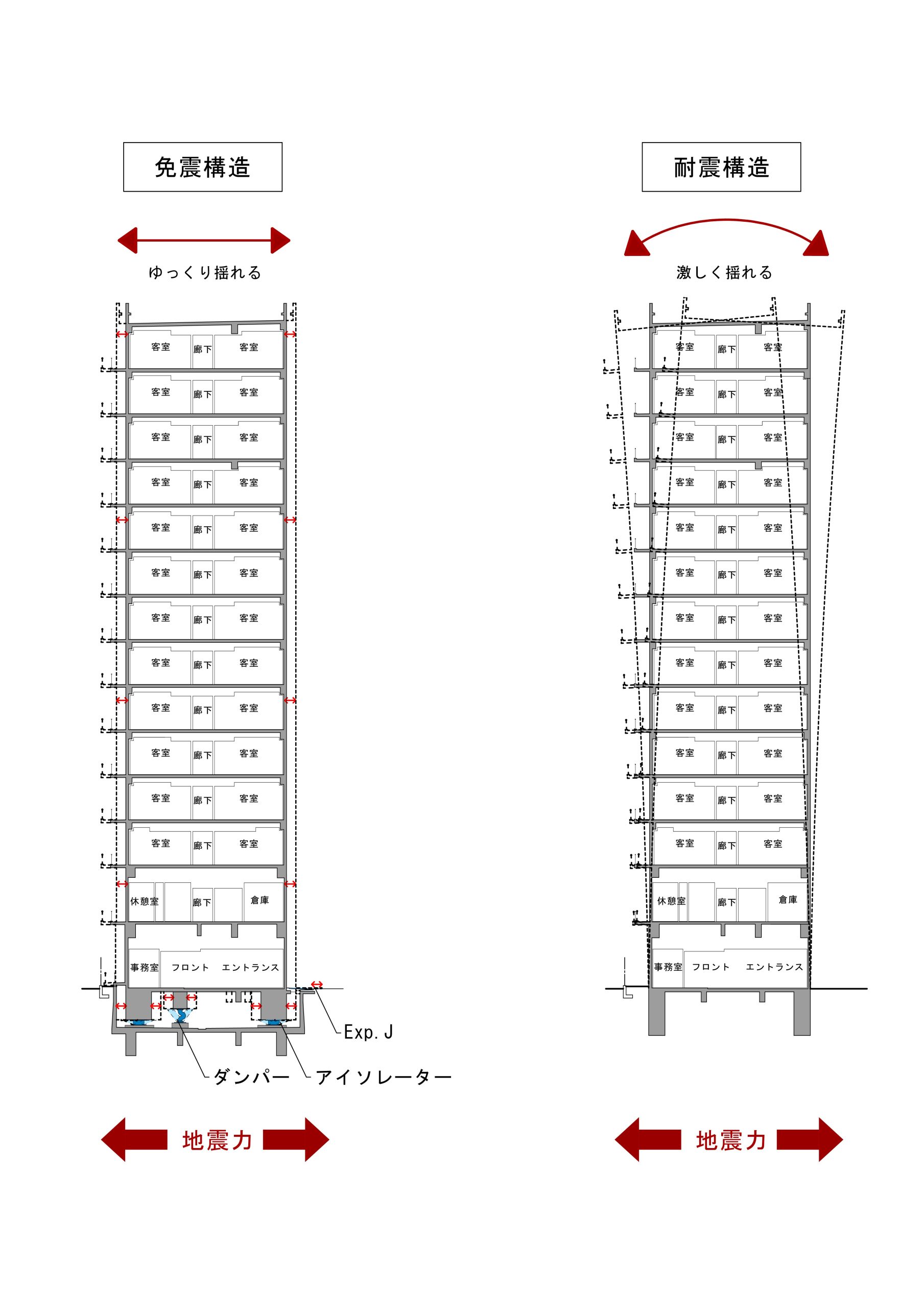 免震構造と耐震構造の揺れ方の違い