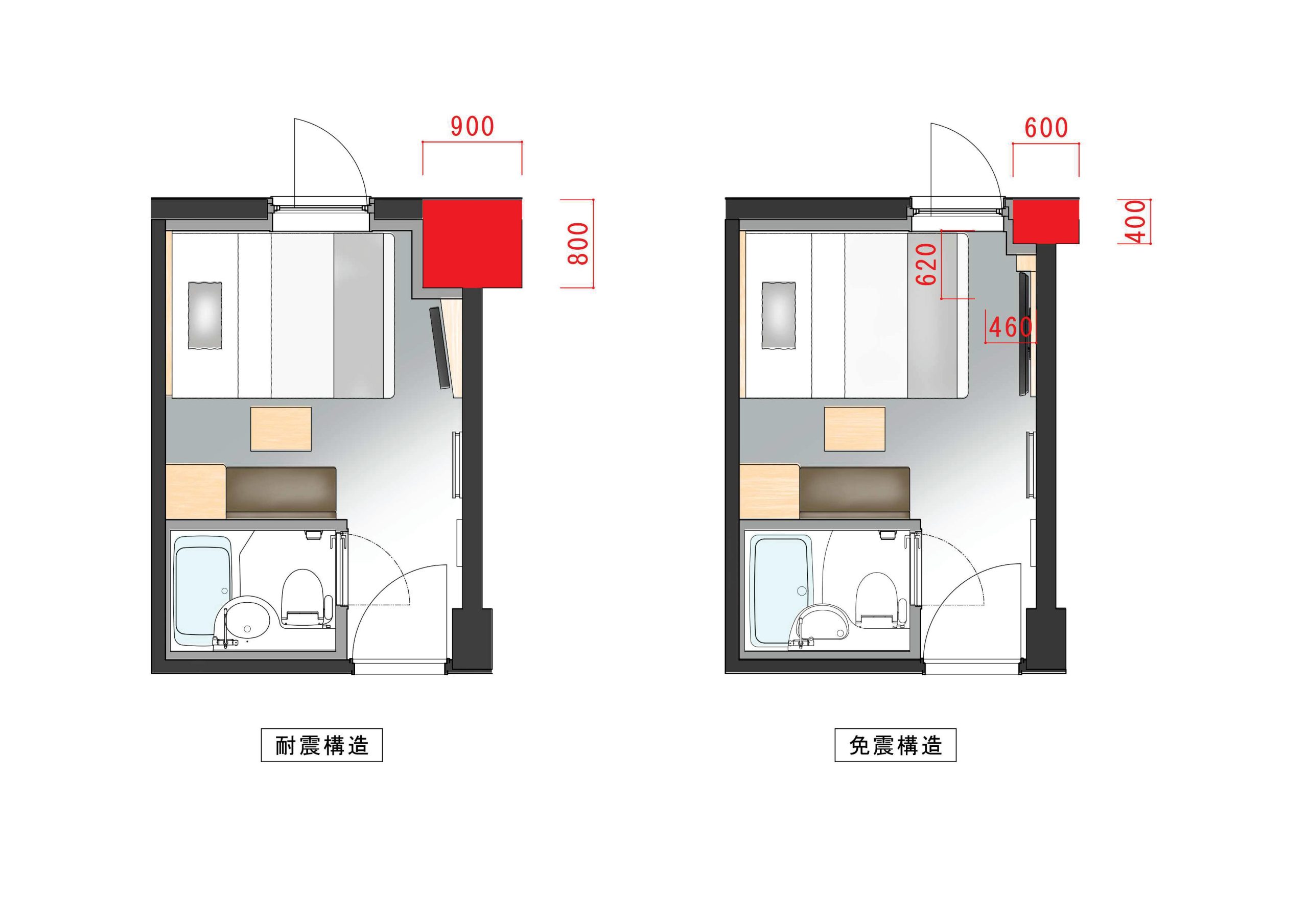 免震層を設置するための地下ピットや、揺れしろを考慮したスペースが不要。